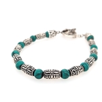Sterling Silver 8" Round Turquoise & Floral Beaded Antiqued Bracelet