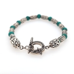Elevate your style with the Sterling Silver 8" Round Turquoise & Floral Beaded Antiqued Bracelet from Clocks & Colours. This exquisite piece combines the timeless allure of turquoise beads with an antiqued floral design bead, creating a harmonious blend of elegance and sophistication. The bracelet features a distinctive raven and feather toggle clasp, adding a unique, stylish touch that sets it apart. Perfect for any occasion, this bracelet effortlessly enhances both casual and formal outfits, making it a versatile addition to your jewelry collection. Crafted with meticulous attention to detail, it promises durability and a touch of artistry, ensuring you stand out with every wear. Indulge in a piece that not only complements your wardrobe but also tells a story of elegance and individuality.