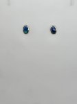 14K White Oval Opal Doublet Bezel Stud Earrings