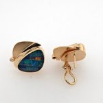 Elevate your elegance with the 14k Yellow Boulder Opal & Diamond Omega Earrings by Patrick Murphy. These exquisite earrings feature vibrant boulder opals, each uniquely patterned, set in luxurious 14k yellow gold. The opals' deep blues and greens are beautifully complemented by the subtle sparkle of diamonds, creating a stunning visual symphony. Designed with secure omega backs, these earrings promise both comfort and style, making them perfect for any occasion, from formal events to casual outings. Weighing 8.67 grams, they offer a substantial yet comfortable wear. Let these earrings be your go-to accessory for adding a touch of sophistication and individuality to your ensemble. Indulge in the artistry of Patrick Murphy and make a statement that’s uniquely yours.