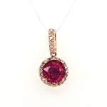 14K Rose Round Fracture Filled Ruby Dangle Pendant