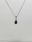 14K White Pear Synthetic Blue Star Sapphire & Diamond Pendant