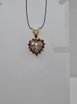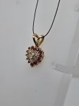 14K Yellow Round Ruby & Diamond Cluster Heart Pendant