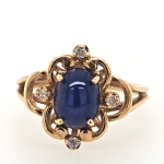 10K Yellow Oval Synthetic Star Sapphire & Diamond Ring