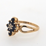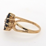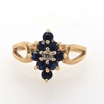 10K Yellow Round Blue Sapphire & Diamond Cluster Ring
