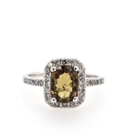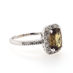 14K White Oval Peridot Diamond Halo Ring