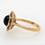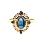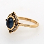 14K Yellow Oval Blue Sapphire Cabochon & Diamond Ring