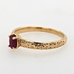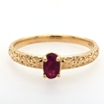 14K Yellow Oval Natural Ruby Scroll Solitaire Ring