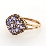 14K Yellow Round Tanzanite & Diamond Cluster Ring